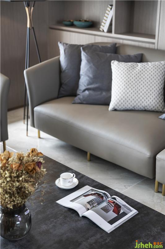 簡質(zhì)空間,客廳大面積的大理石,與木飾面的碰撞,搭配冷色系沙發(fā),使整個空間成熟穩(wěn)重,又不失一些木質(zhì)帶來的輕與暖。