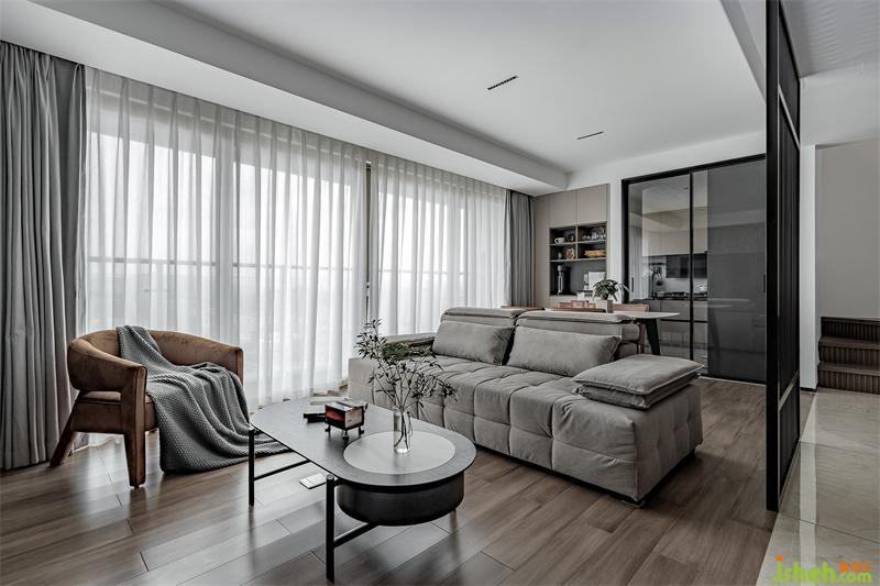 在購置軟裝的時候,業(yè)主挑了一款灰色沙發(fā),頭部可調(diào)節(jié)至與頭部平齊,日??措娨晻r可以防止葛優(yōu)躺。