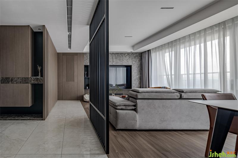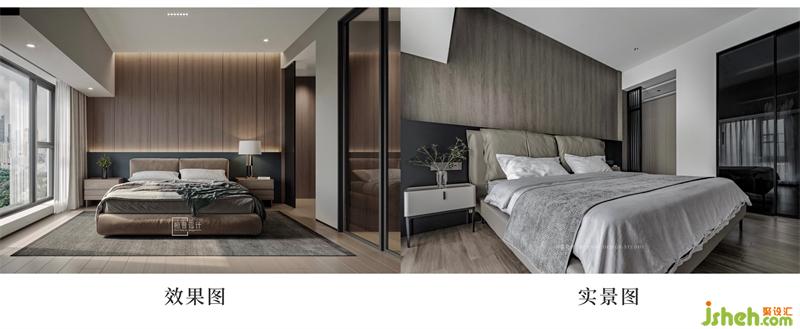 床品選擇了與木飾面相配的棕灰色,很適合長輩居住,有種獨(dú)特穩(wěn)重的氣質(zhì)。