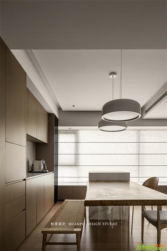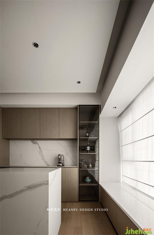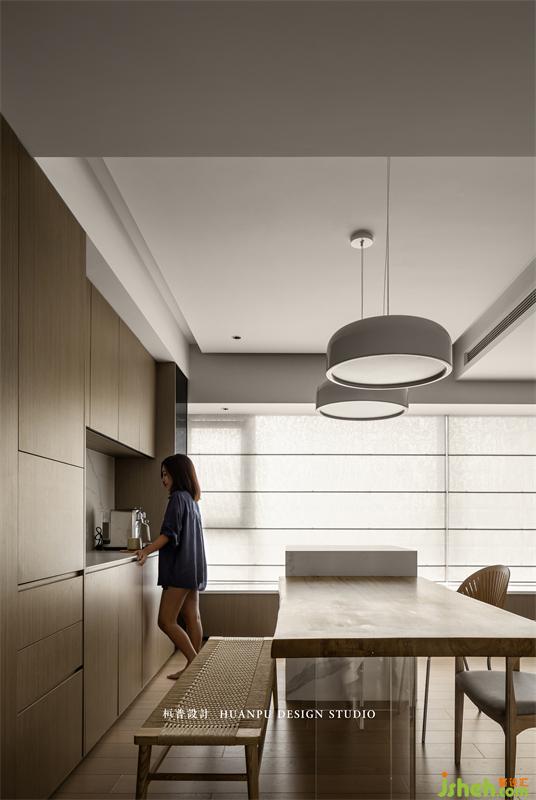 餐廳區(qū)域設(shè)置西廚功能,正面高柜提高收納空間的同時(shí),備餐更便利。