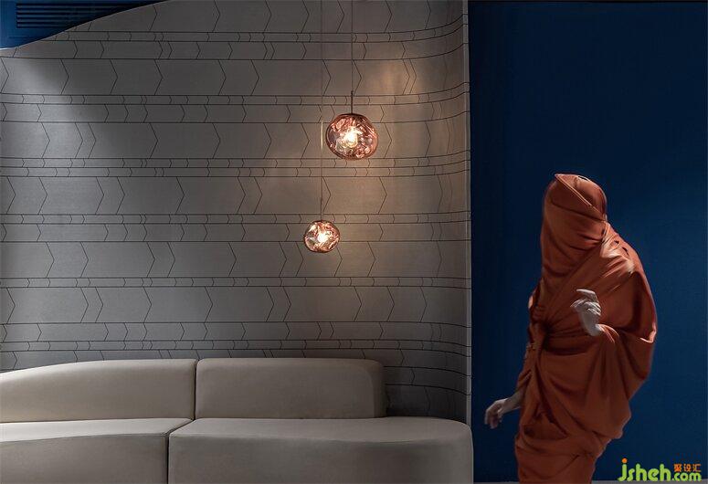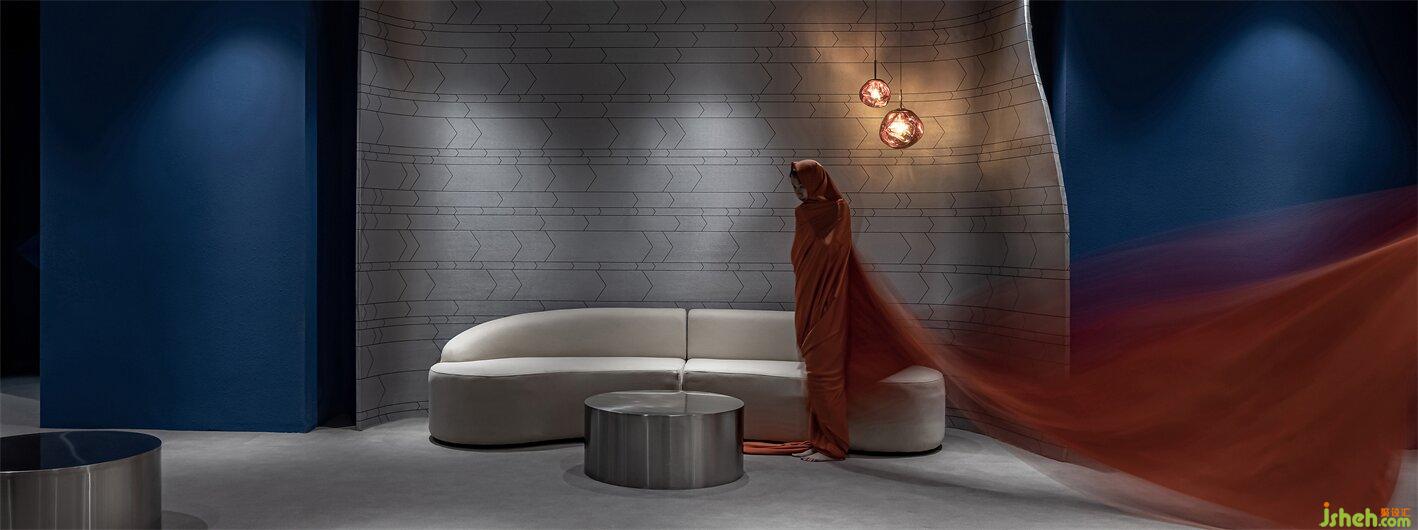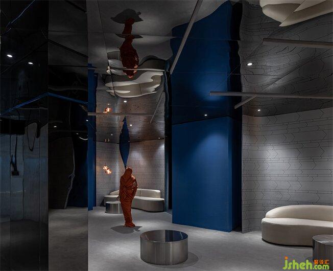 The main color of the reception area has been upgraded from azure blue to sapphire blue. The artistic lacquer surface and the metal brushed screen wall are interlaced and interdependent, just like the infinite entanglement between the seaand thesky with the Kun and the Peng. The screen shapes are different, the wall stylingchanged constantly, andthe elements engraved into the texture resemble scales and feathers. Representing the most natural curves of the living, freely swayed and naturally flexible.