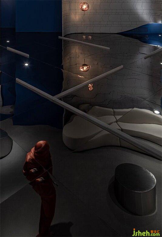 The whole space is covered bylight gray carpets,stepping into which, it is like walking on the beach. The huge glass sliding door is the last barrier to sea level. When you enter through the door, you are already in the deep sea.