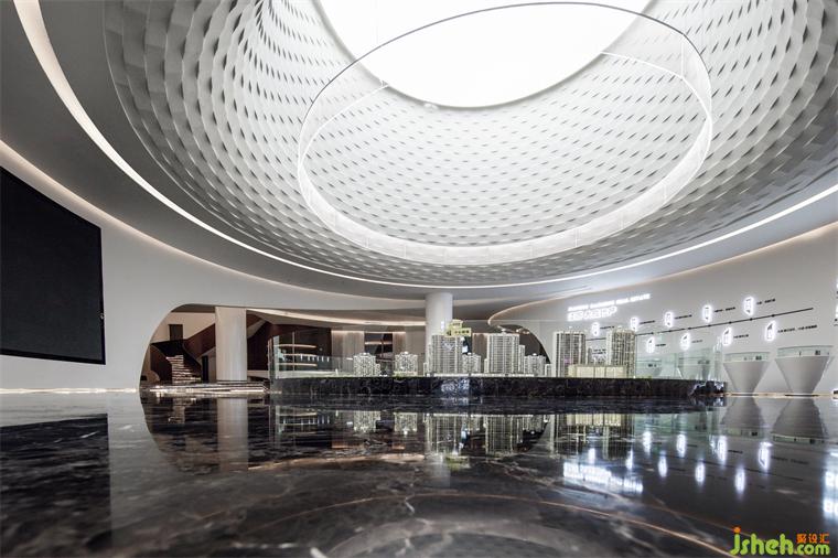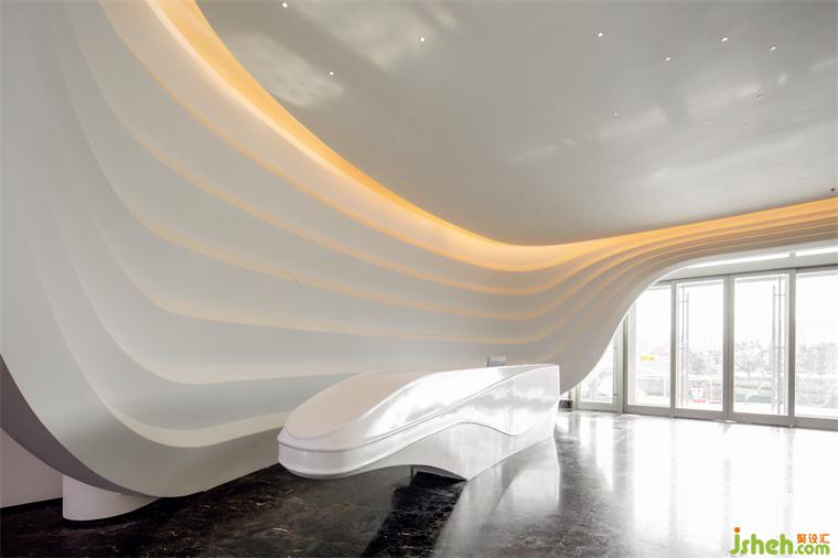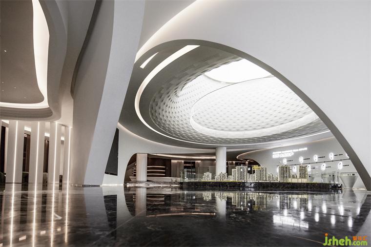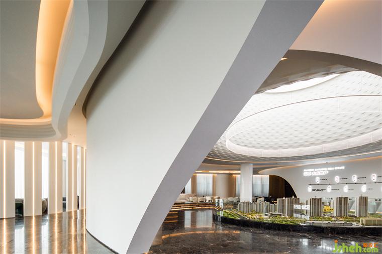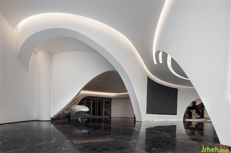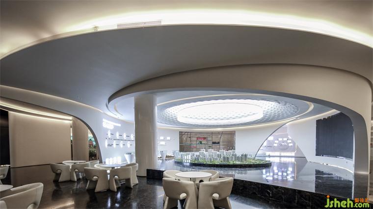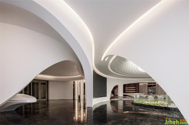 在規(guī)則的1200㎡內(nèi)部,無論是生活家園還是精神圖景,售樓處設(shè)計都放棄了直角、堅硬與頑固,轉(zhuǎn)而追尋自由的弧與流線,那是在河流、波浪頂端、云的邊緣、人的臉龐上的曲線,曲線構(gòu)成了該項目設(shè)計想象中的全部宇宙,一個彎曲的、愛因斯坦式的宇宙。
