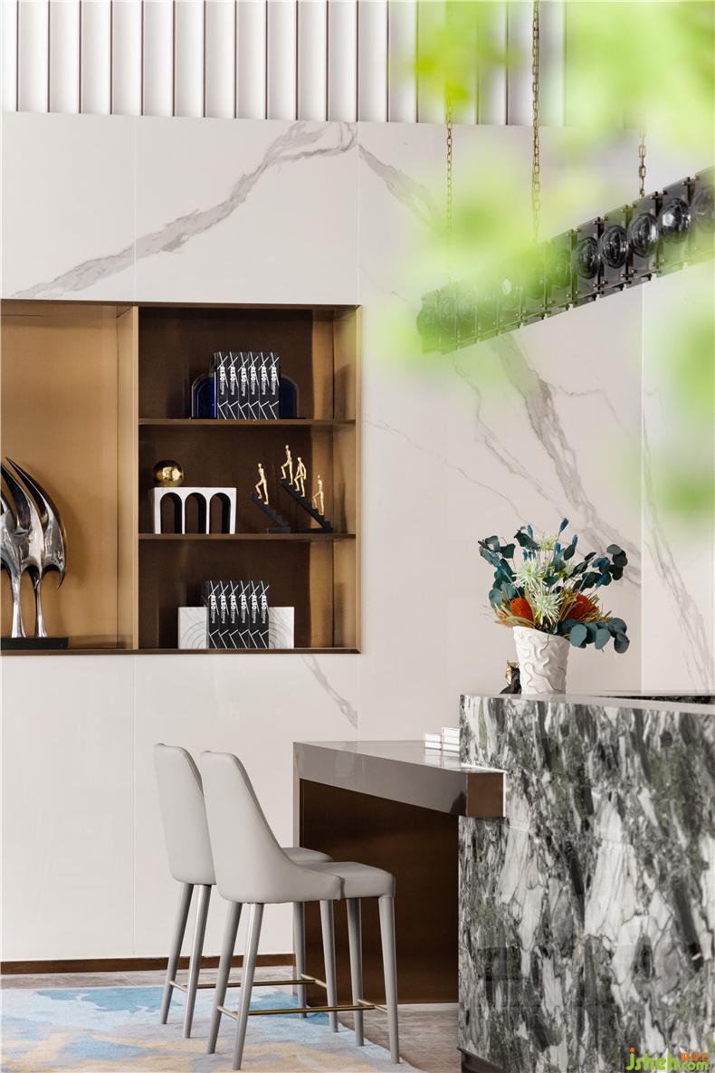 The mirror surface is like the water surface, and there are extremely rich and profound connotations in the calmness. When we are talking about "water", we are actually talking about nature. We talk to the "water" in the design, and the viewers see the true meaning of nature in the space.