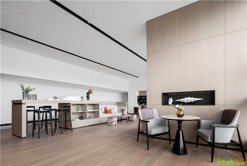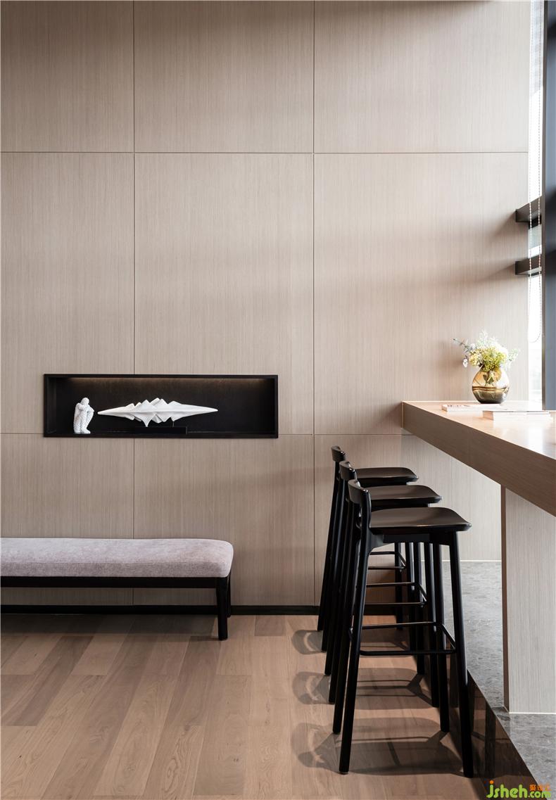 臨窗一隅可眺望清幽,靜謐的白龍?zhí)叮瑔酒鹑诵闹袑ψ匀坏某绨莺拖蛲?。對話區(qū)整體布局疏落有致,材質(zhì)的溫潤與藝術(shù)品的雅致自成一副休憩情境。