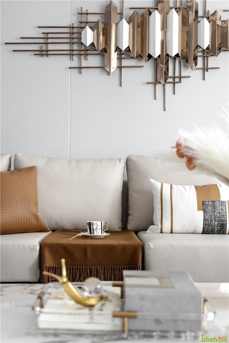 不同體量的色塊在搖曳光影的撫摸下,有閑情,有雅趣,樣板房設(shè)計漸漸地鋪陳出一種詩意。客廳空間整體簡潔明凈,大地色系讓人倍感治愈。