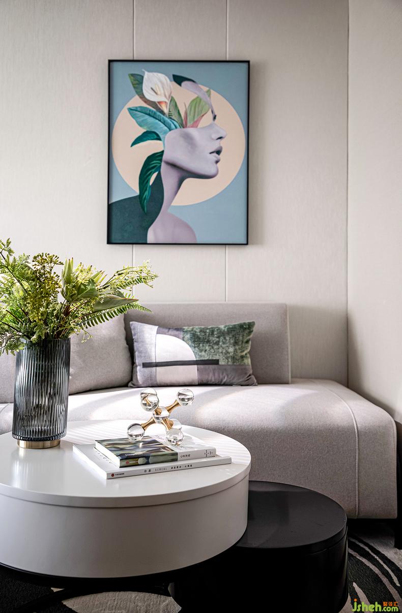 空間與人相輔相成,設(shè)計、藝術(shù)之于人,其最終目的是提煉生活,樣板房設(shè)計與之形成共鳴。藝術(shù)品透過錯位創(chuàng)造趣味雅致的視覺效果,金屬質(zhì)感顯現(xiàn)出輕奢格調(diào)