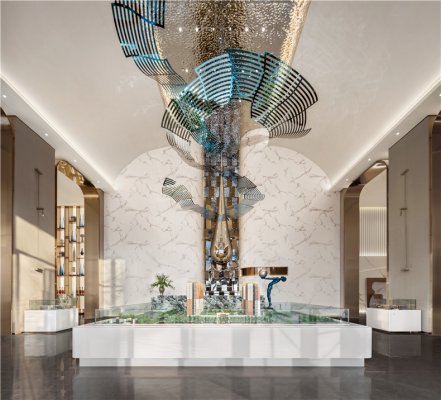 水滴藝術(shù)擺件和燈光接洽,打造出腔調(diào)十足的高雅品位樣板房設(shè)計