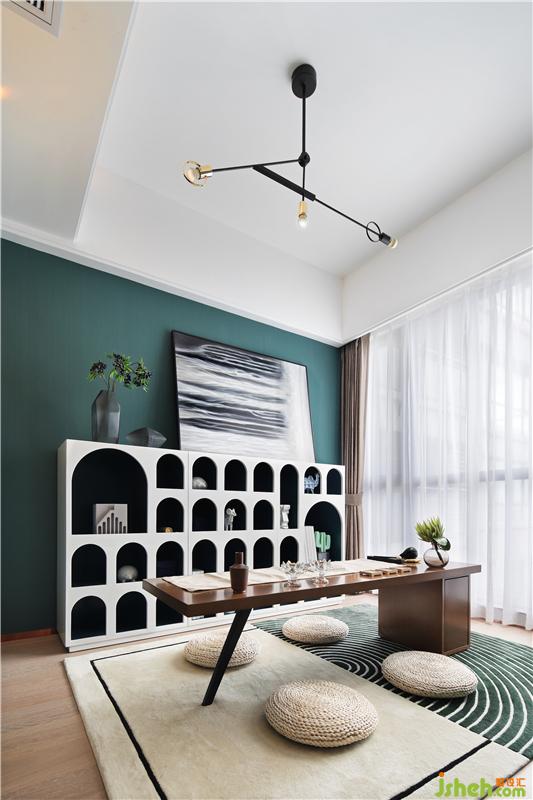 安靜中帶著禪意,是爸爸最愛呆的地方,每天都會花上幾個小時在這里,寫字閱讀思考,斗柜里都是父母外出旅游帶回來的紀念品,柜子上的靠畫也是父親的攝影作品,雖然空間里有不同的符號,但并不影響它的協(xié)調(diào)和平靜。