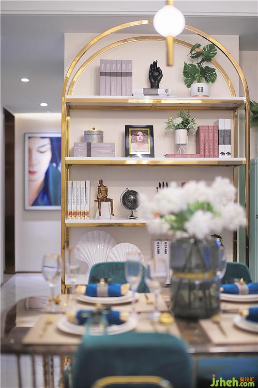 餐廳是一家人享受美食的地方,旁邊金色的裝飾書柜打破了這種唯一性,用完餐來(lái)一次餐后閱讀;你洗著碗,我等著你,溫馨的畫面讓人羨慕。裝修公司
