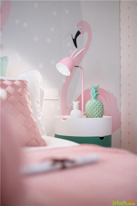 女兒喜歡看童話故事,喜歡看動(dòng)畫片(火烈鳥的驕傲),墻面火烈鳥的噴繪,拉高了整個(gè)房間的空間感,給她想要的童年是父母給與最好的愛(ài)護(hù),粉底色色調(diào)結(jié)合點(diǎn)綴的五顏六色其它物品,是女兒最愛(ài)呆的地方。裝修公司