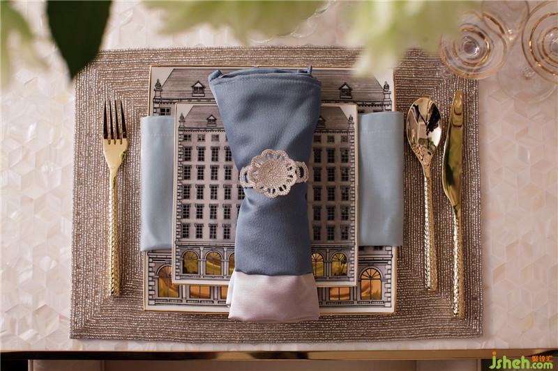 餐廳光線溫暖,以金屬吊燈營造溫馨柔和的氛圍,搭配充滿氣質(zhì)的餐椅,凸顯優(yōu)雅品味,再以藍(lán)色餐巾點(diǎn)綴營造了大氣又不失清爽的溫馨氣息。如果說有一種顏色能驅(qū)散陰郁,帶來治愈,那就是藍(lán)色。它擁有迷人的優(yōu)雅與靈氣,為房子注入一份自然的活力,并將它高貴的氣質(zhì)渲染的淋漓盡致。裝修設(shè)計(jì)