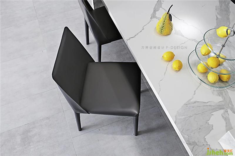 餐廳空間是日常生活的重心之地也是體現(xiàn)家的氛圍之處。開放式廚房最重要的是擁有一個(gè)島臺(tái),簡單大氣的巖板餐臺(tái)也延續(xù)了客廳的,配上舒適的餐椅,搭配吊燈,開燈的瞬間溫暖整個(gè)空間。室內(nèi)設(shè)計(jì)師