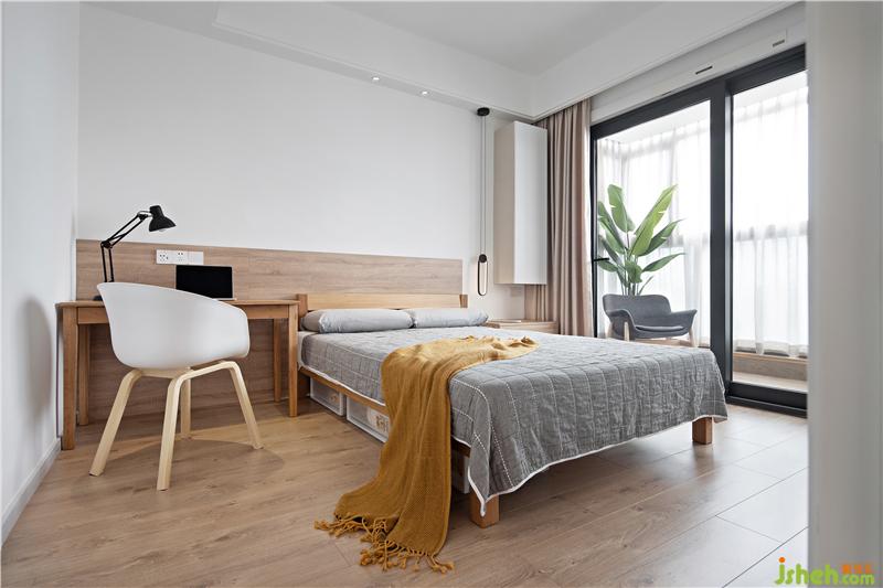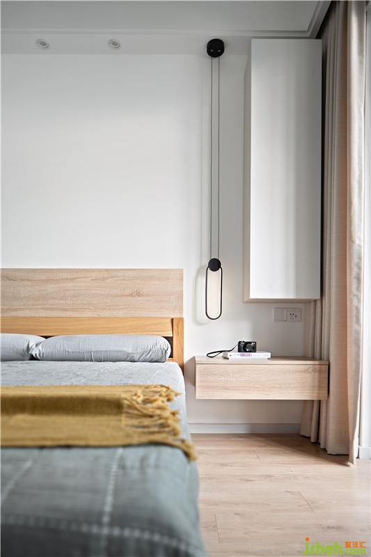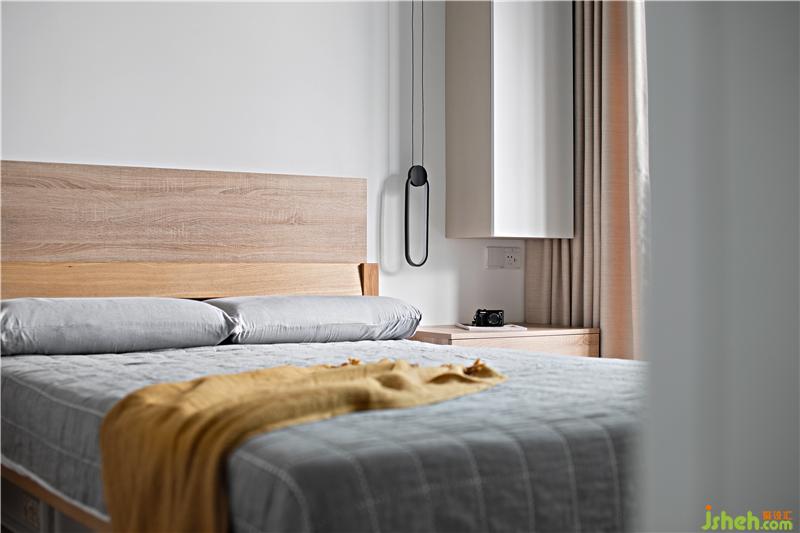 主臥,家具也都是延續(xù)了客餐廳的原木風(fēng)格,搭配溫柔的灰色,大面積留白,使臥房更加溫潤明亮,營造理想的睡眠環(huán)境;整面的儲(chǔ)物柜保證房間的干凈整潔。
