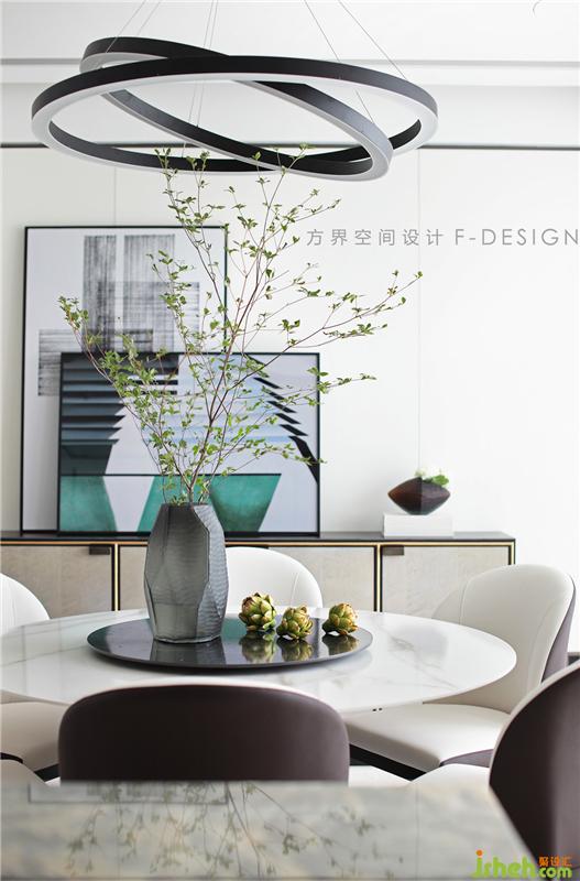 餐廳是家人們團聚交流情感的地方,一張大圓桌把家人聚集到一起,餐椅舒適精致而優(yōu)雅,家的格調(diào)就蘊藏在不經(jīng)意的細節(jié)中。餐桌頂部設(shè)有吊燈,餐桌的綠植點點綠色隱沒在白色之間,帶來自然、舒適的氛圍感。