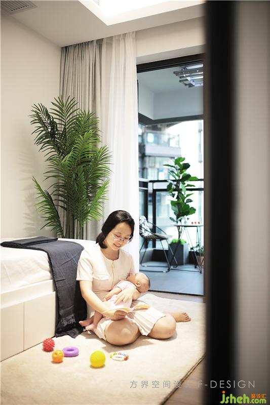 房門采用一門到頂?shù)男问?;大面積的白色更能表達(dá)空間的無限張力,讓空間變得更加純粹更加安靜。房間沒有增加太多的軟裝,等寶寶長大的時候,這個空間就可以隨意改動了,即可變成游樂場、娛樂區(qū)、閱讀區(qū),每個空間都在上演著各種可能。