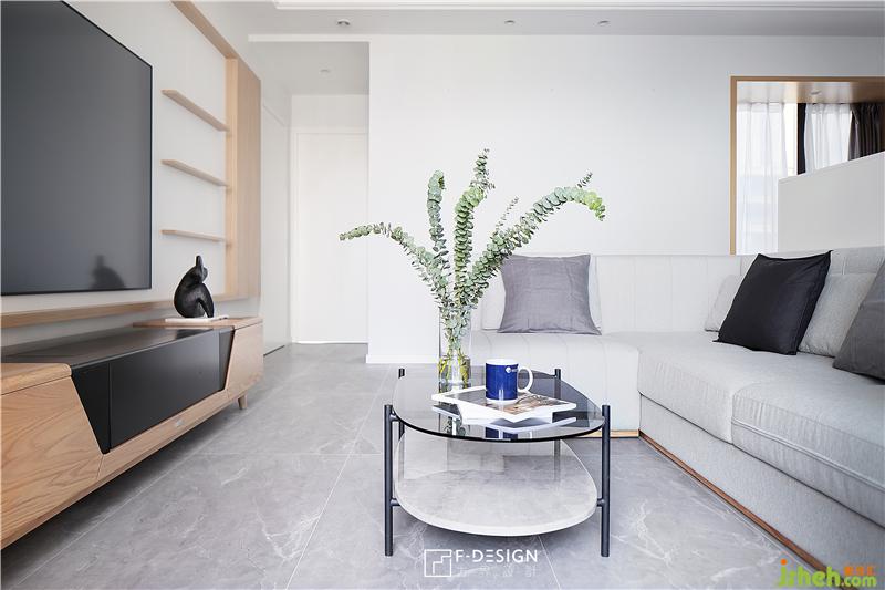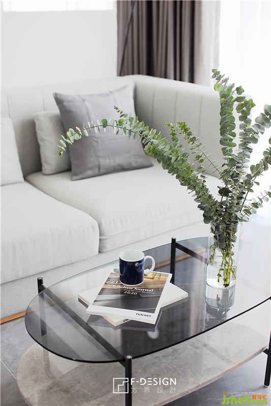 客廳延續(xù)了整體的簡約優(yōu)雅,光線透過紗簾,自然光通透整個客廳的空間;清風徐來,安適自在。