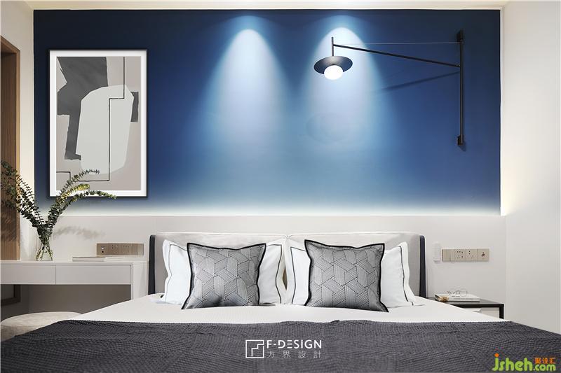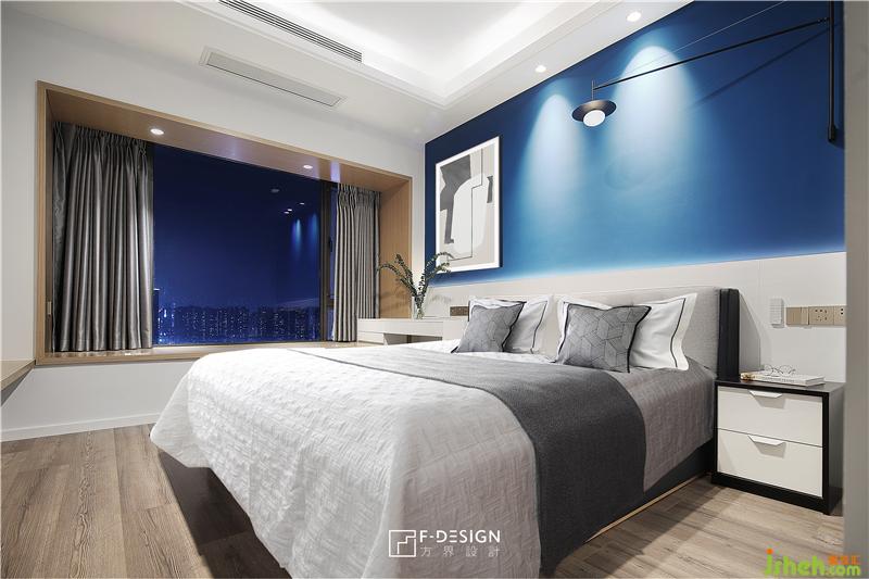 主臥,一大扇飄窗,讓主臥顯得寬敞明亮,空間以柔和的藍(lán)色作為床頭背景墻,窗外的夜色也與之相呼應(yīng),室內(nèi)設(shè)計(jì)師讓臥室空間多了一分靜謐,變得更具溫情。一切以舒適為主,業(yè)主能在這樣的氛圍中更好的放松。