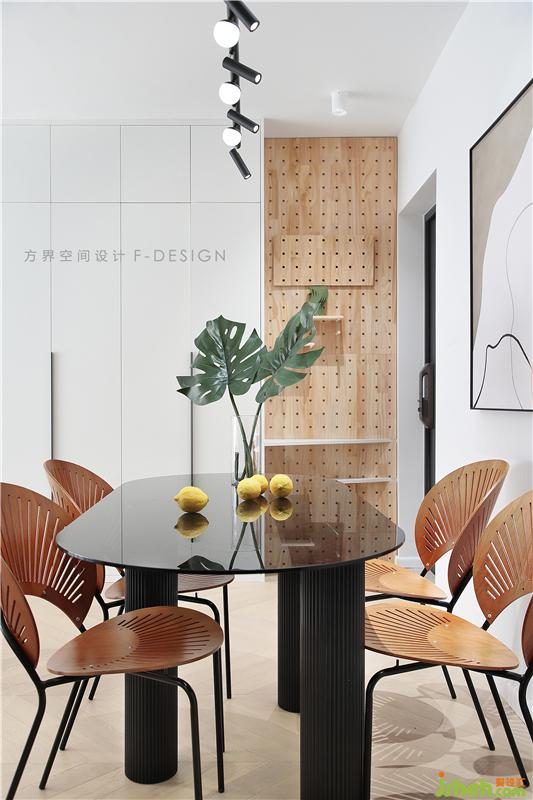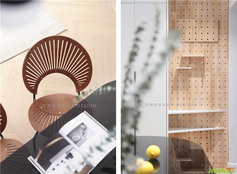 在比較局限的空間里,玄關側(cè)墻處設計了一個過度區(qū)域 , 放置「洞洞板」,方便進出門隨時要拿取的小物,也利用洞洞板擋總開關電閘盒,裝飾性強,實用性高。