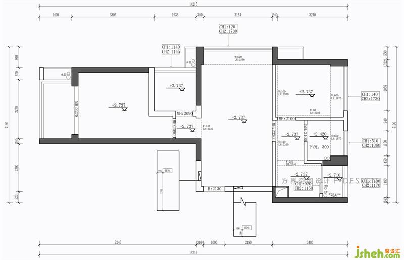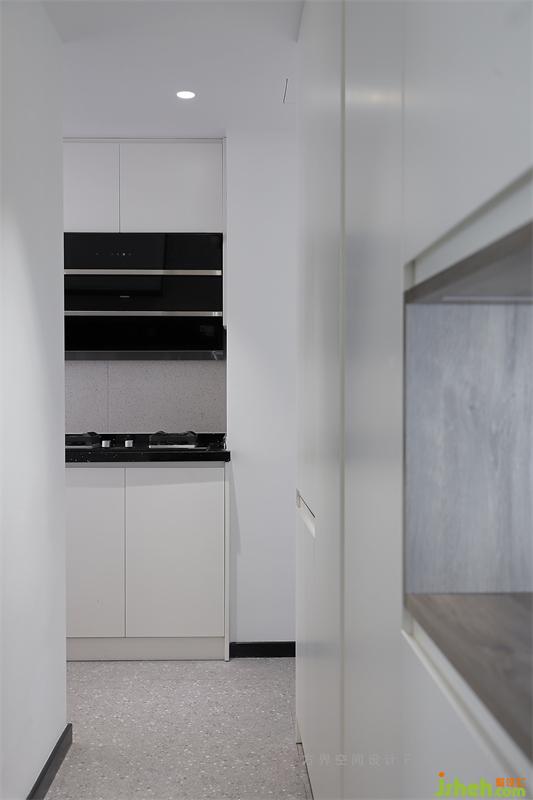 1、入戶右手邊的廚房隔墻拆除做成了開(kāi)放式廚房;
