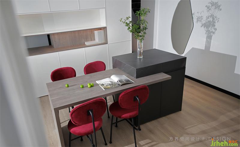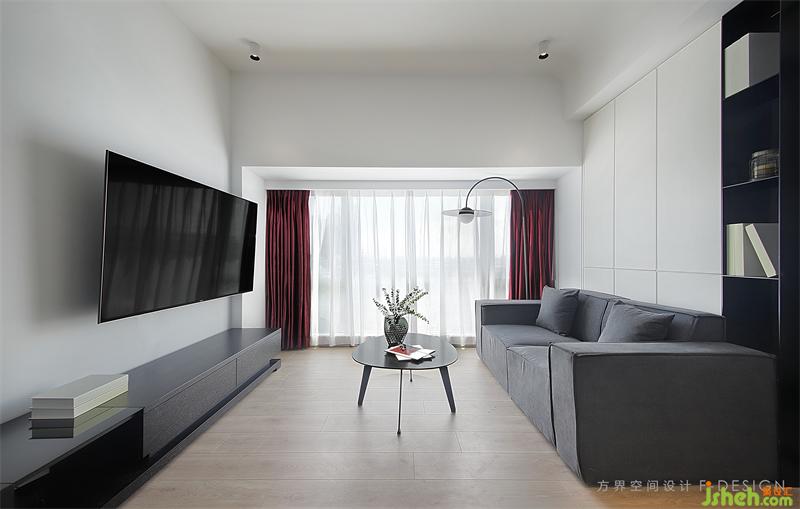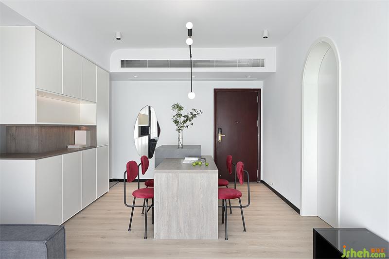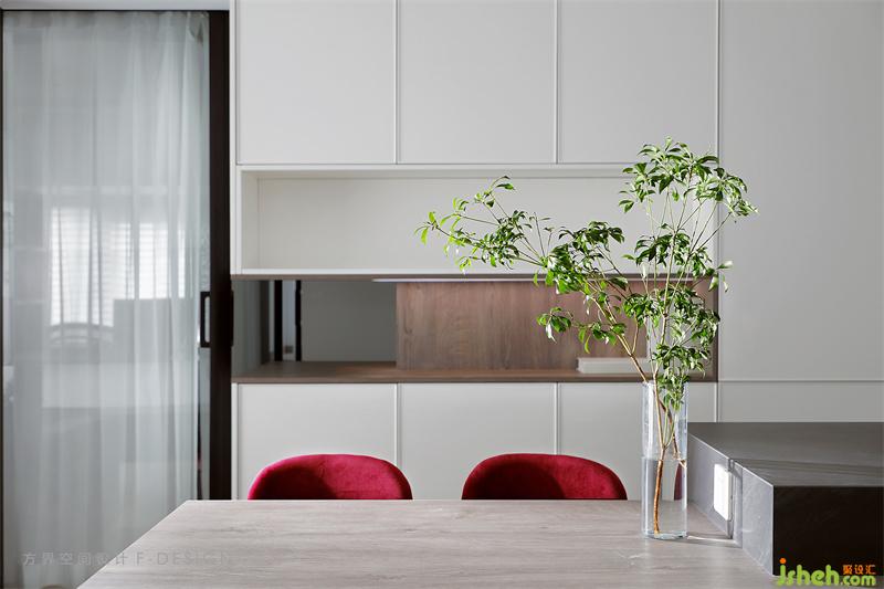 在充滿各種誘惑的世界里,用一份平淡克制欲望留下一份熱情??蛷d的色彩跳躍與留白,線條的曲與直,材質(zhì)銳利與柔和。把紅色運(yùn)用到空間里面整個(gè)風(fēng)格如平靜里的躁動(dòng)。