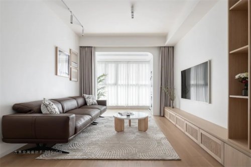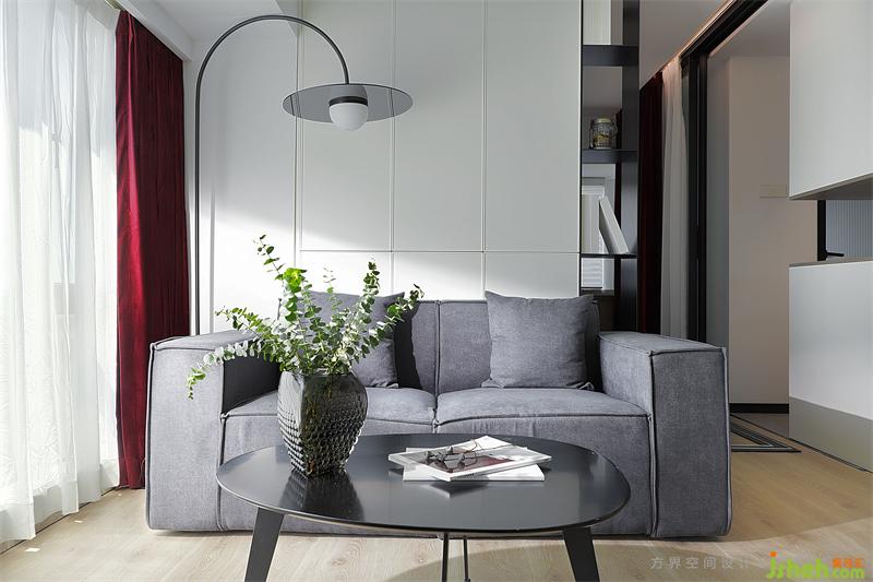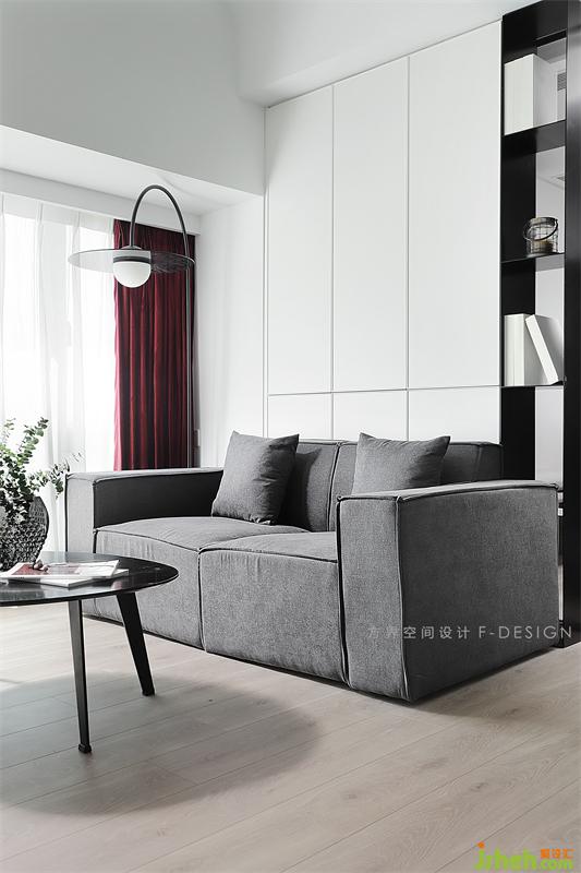 室外陽(yáng)光明媚,屋內(nèi)寧?kù)o清愜。沙發(fā)墻做成了一面實(shí)用的收納柜與功能房一柜之隔。