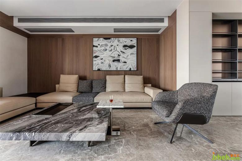 客廳汲取意式精髓,華潤幸福里公寓設(shè)計將經(jīng)典的現(xiàn)代室內(nèi)設(shè)計風(fēng)格發(fā)揮到極致,不著痕跡鑲嵌在家具細(xì)節(jié),將舒適、美好和品質(zhì)帶入人們生活