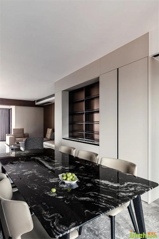 黑色大理石桌面,極簡主義汲取靈感,華潤幸福里公寓設(shè)計(jì)將藝術(shù)審美暗藏于內(nèi),靈動(dòng)色彩、高雅氣質(zhì),點(diǎn)綴精致每一餐