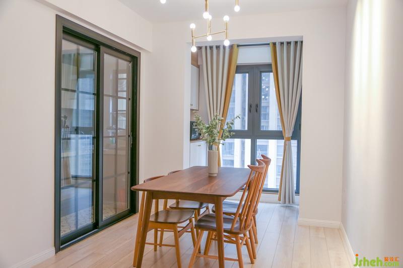 我們將北陽臺融入餐廳區(qū)域,利用陽臺打造了兩個多功能儲物柜。它不僅僅是對儲物空間的補充,還留有可供操作的臺面,容納了烤箱、燒水壺,分擔了一部分廚房收納。