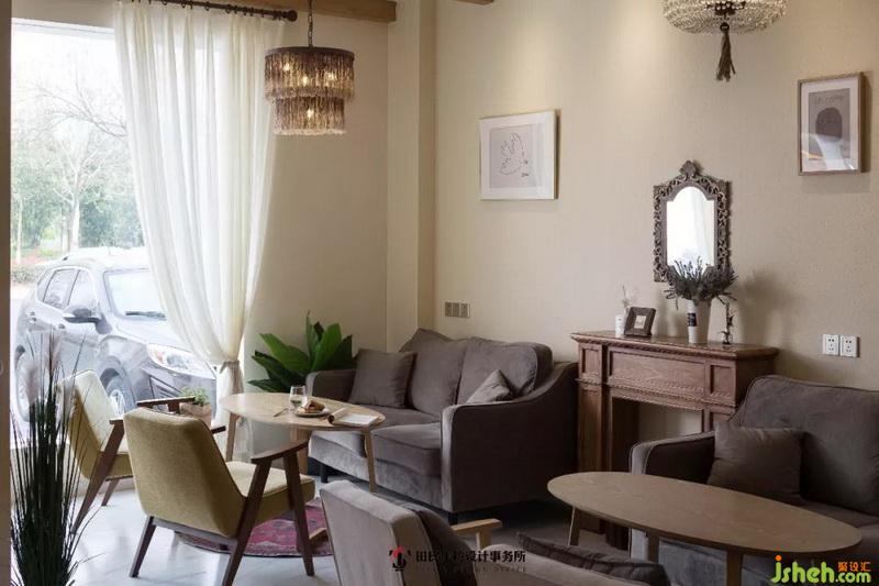 店內(nèi)室內(nèi)設(shè)計師采用米黃為主色調(diào),復(fù)古精美的墻掛式鏡子、胡桃木質(zhì)的矮柜與柔軟簡約的布藝沙發(fā)、樺木紋理的小茶幾形成了歐洲中世紀(jì)奢華風(fēng)與現(xiàn)代北歐簡約ins風(fēng)的強(qiáng)烈沖擊,古與今,繁與簡的交互,使咖啡屋整體的裝飾層次紛繁而又巧妙,值得推敲。