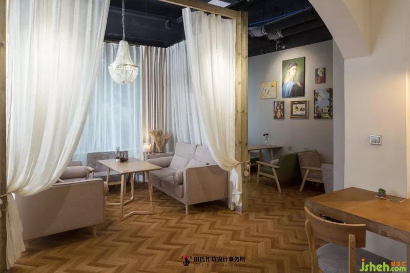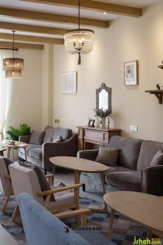 休息區(qū)的吊燈則各不相同,但都是以麻繩為主體,棕、黃、白三色交織,與咖啡屋主體呼應(yīng),展現(xiàn)出濃濃的歐式風(fēng)情。
