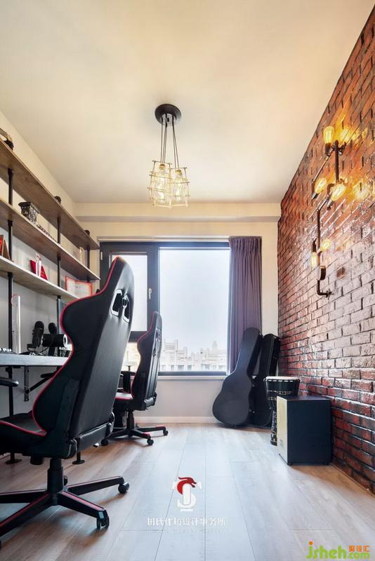 如果說其他區(qū)域都是工業(yè)風(fēng)點(diǎn)綴現(xiàn)代風(fēng),那水管燈配上紅磚墻就是工業(yè)氣息最濃厚的地方。也是酷愛音樂,游戲,舞蹈的男業(yè)主最喜歡的空間。