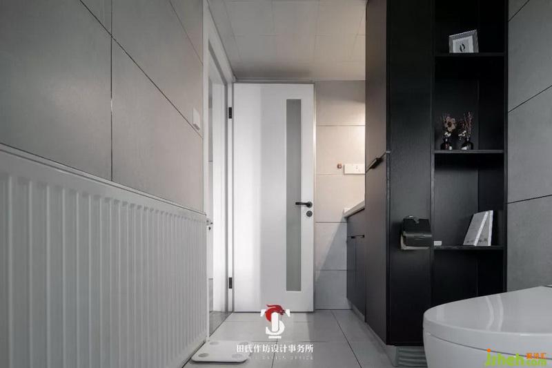 客衛(wèi)干濕分區(qū),墻磚選擇了可愛的圖案,給干凈利落的黑白空間中添加了一些活潑的元素。