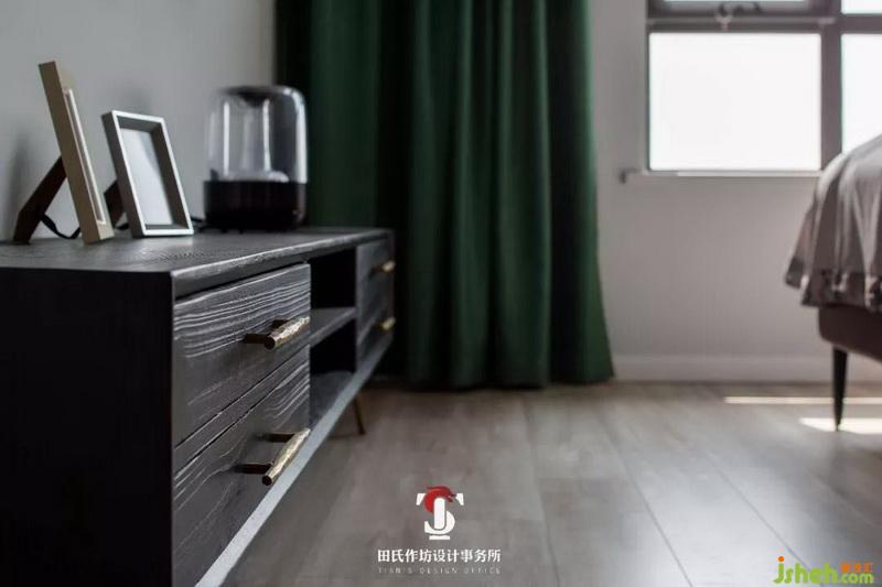 室內(nèi)設(shè)計(jì)師在主衛(wèi)專門設(shè)計(jì)了儲(chǔ)物空間,開放的儲(chǔ)物空間更方便日常的使用,收納一些瓶瓶罐罐或者是衛(wèi)生用品再合適不過了。黑色的浴室柜也與整個(gè)黑色柜體相呼應(yīng)。