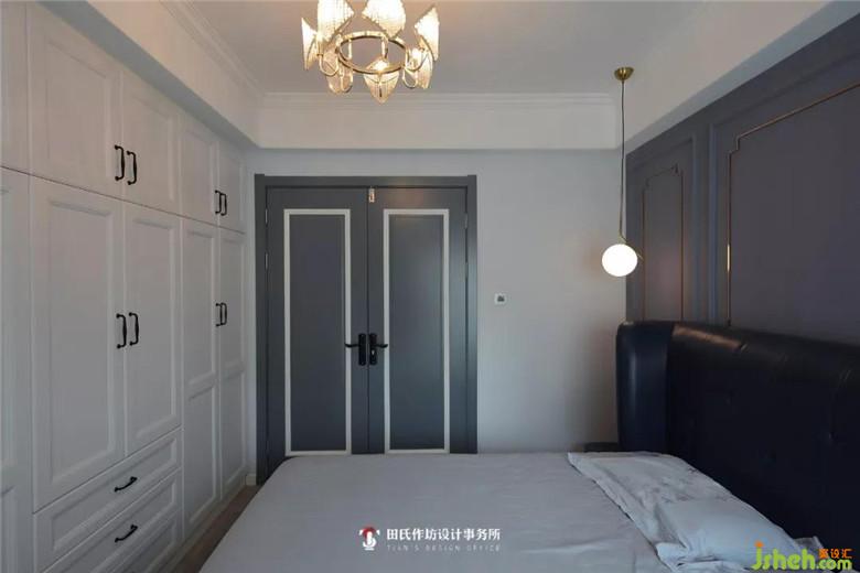 主臥衣柜調(diào)整到床位前方,讓整個(gè)主臥空間更加寬敞,儲(chǔ)物空間更大。水晶吊燈繁復(fù)卻不失格調(diào),暖黃的光源也能使疲憊一天的業(yè)主在臥室休息時(shí)也能感到一份溫馨和依賴(lài)。
