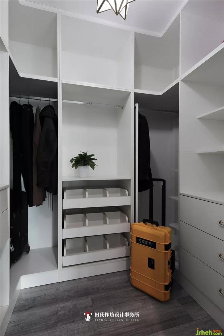 原有的儲(chǔ)藏室擴(kuò)大變成了衣帽間,衣帽間的門(mén)室內(nèi)設(shè)計(jì)師采用玻璃鎖門(mén),為了能把更多的光線(xiàn)引入衣帽間,使業(yè)主穿著打扮時(shí)能在一個(gè)敞亮的環(huán)境中進(jìn)行,將一天的好心情從這里開(kāi)始!
