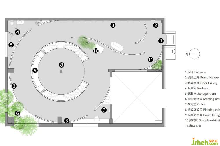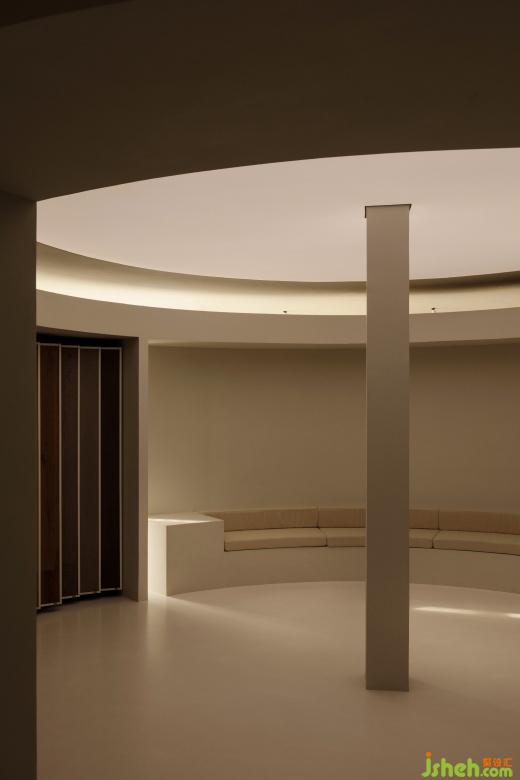 受到北京天壇祈年殿的啟發(fā),設(shè)計(jì)師在原本矩形的空間內(nèi)部置入了一個(gè)圓筒形結(jié)構(gòu),圍繞這個(gè)體量,空間被簡潔的切分為了“內(nèi)圓外方”的空間格局。