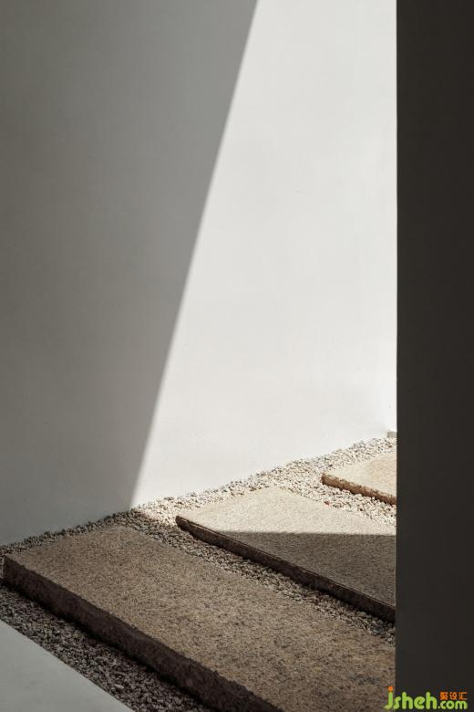 美術(shù)館設(shè)計入口處設(shè)置的灰空間,配合汀步的設(shè)置,讓進入的速度被放緩,心也由此慢了下來,整理好再次進入,既起到了過渡空間的作用,又刻意讓內(nèi)與外的主題保持了距離,增強了空間的私密性與層次感。