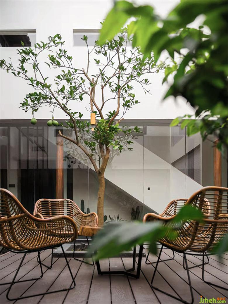 老房的三進二院,老房改造“進”即為入口,“進”和“院”用大量的落地玻璃做了空間上完美的連接,茶館設計最大限度去掉了封閉而呈現(xiàn)通透與輕盈感,前院以小景觀作為空間的過渡,而后院不僅在結構上做了擴展,手法上也非傳統(tǒng)的中式風格,而是融入東南亞庭院的味道使整個空間更休閑輕松。
