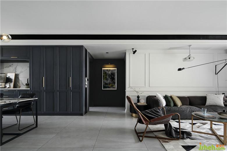 沙發(fā)背景一側(cè)是通往兩個(gè)臥室的小過道,采用了和柜體門板同色的灰色作為背景色,和左側(cè)的柜子行程整體的統(tǒng)一性!加以裝飾畫做點(diǎn)綴,將客廳和餐廳的空調(diào)放在同側(cè),用黑色加長風(fēng)口作為貫穿,延長了客餐廳的人視覺空間!