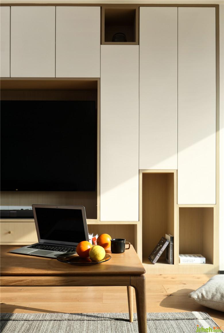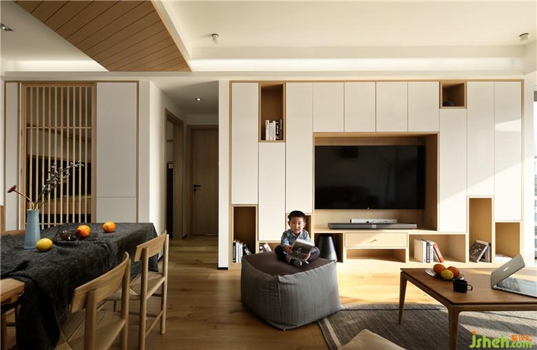 ▲大量的木與白以無造作的色彩構(gòu)筑北歐+日式自然風(fēng)尚(全屋柜體均為現(xiàn)場制作),同色系的白墻與白色烤漆柜門(外定),襯托出木色柜體的肌理線條。