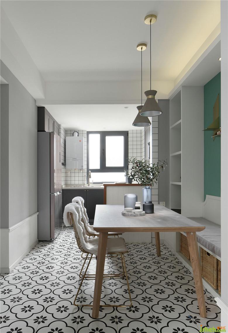 ▲餐廳背景墻室內(nèi)設(shè)計(jì)師依舊選用了屋主中意的綠元素,在白色定制卡座的映襯下,讓這片區(qū)域顯得更加清爽,帶給視覺極大地舒緩。開放式的布局讓餐廳和廚房更加通透明亮,各個(gè)功能區(qū)的聯(lián)系也顯得更加緊密。