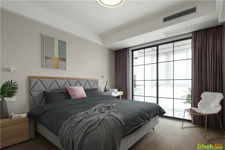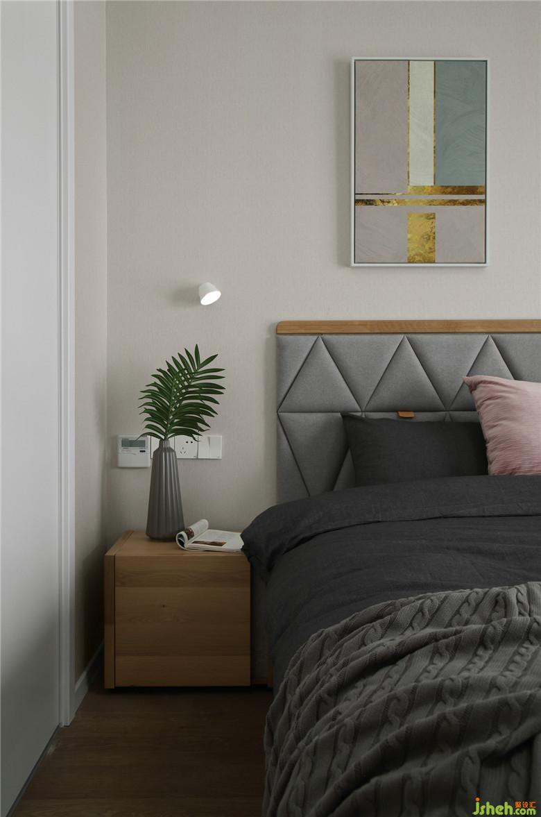 ▲由于臥室是睡眠區(qū)域,設(shè)計(jì)師則以柔和的灰粉調(diào)子進(jìn)行呼應(yīng),精心挑選的裝飾畫(huà)也迎合了整體色系,旨在達(dá)到屋主對(duì)藝術(shù)追求的同時(shí),保證家應(yīng)有的舒適度與溫馨感。