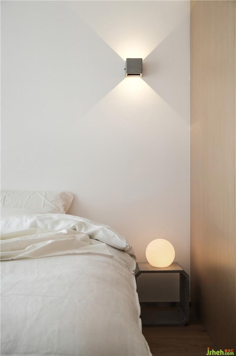 ▲無論床頭柜還是燈具皆以簡約的外形為裝飾,在私密的臥室空間中,用喜歡的顏色、材質(zhì)將自己包圍就是最放松的氛圍,而極簡風(fēng)格的愛好便是簡飾于心的追求。