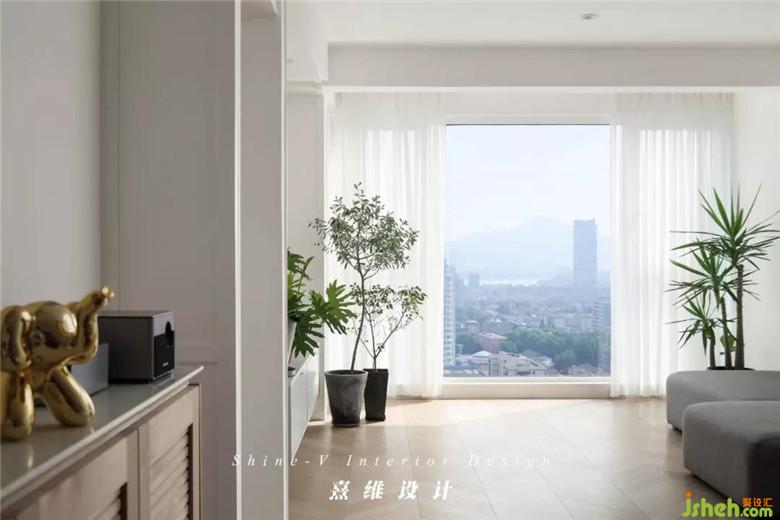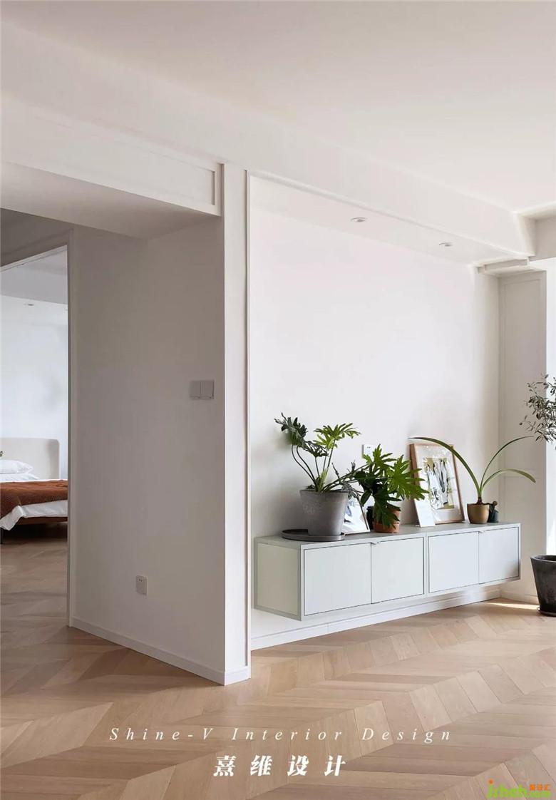 ▲留白的電視背景墻,懸空的簡(jiǎn)約電視柜,都被植物裝點(diǎn)。屋內(nèi)細(xì)節(jié)處處都被不同的植物穿插點(diǎn)綴,與家具物品不同的舒展形態(tài),是讓人可以感受四季與生命力的存在,于是家中的景更鮮活起來(lái)。
