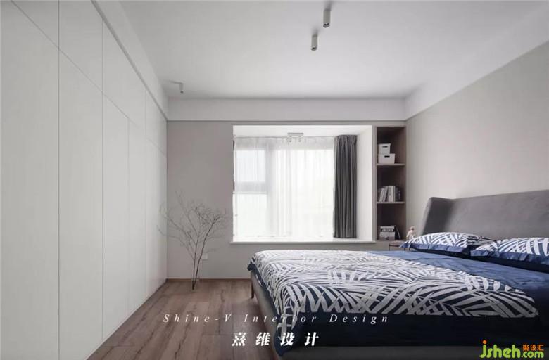 ▲臥室墻體朝客廳方向的推移,讓主臥擁有了整面素白的衣柜,補(bǔ)充了較小的衣帽間無(wú)法提供的充足收納空間。窗邊的開(kāi)放式收納靠近床頭,陪伴睡前時(shí)光的書(shū)本可以置于此處。日長(zhǎng)如常,舒展的心境是面對(duì)生活的最好姿態(tài)。