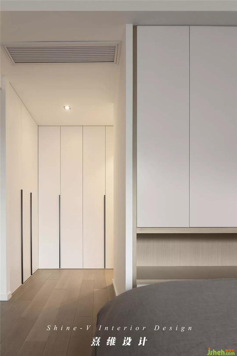 ▲除了地柜外,上方裝修公司匹配相應(yīng)吊柜解決當(dāng)季衣服收納的問(wèn)題。斜后方衣帽間柜體由于墻體拆除與主衛(wèi)的縮減可以更充分的發(fā)揮所長(zhǎng)。主臥內(nèi)柜體的白色迎合明亮的環(huán)境,為理想生活完成必備的實(shí)用部分。