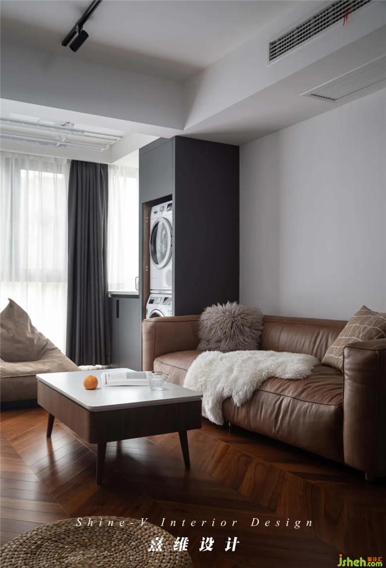 ▲長坐深的沙發(fā)有著與豐厚外表相匹配的舒適度,易于撫慰日常奔波后的身體。陽臺柜選擇L型,引更多光線入室,不搶眼的灰色柜體安心居于室內(nèi)一隅,做一個“有用”的配角。