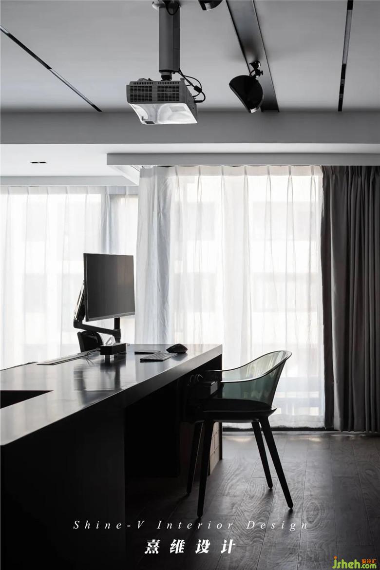 ▲大量的黑色在這里被壓住深沉晦澀,形態(tài)與質(zhì)感標榜出黑的內(nèi)涵,像一切神秘莫測的事件藏身的月夜。這些放置在淺色地磚上的黑色,其干練被無限放大,拉上窗簾看電影時,又化身為屬于你的暗色堡壘。