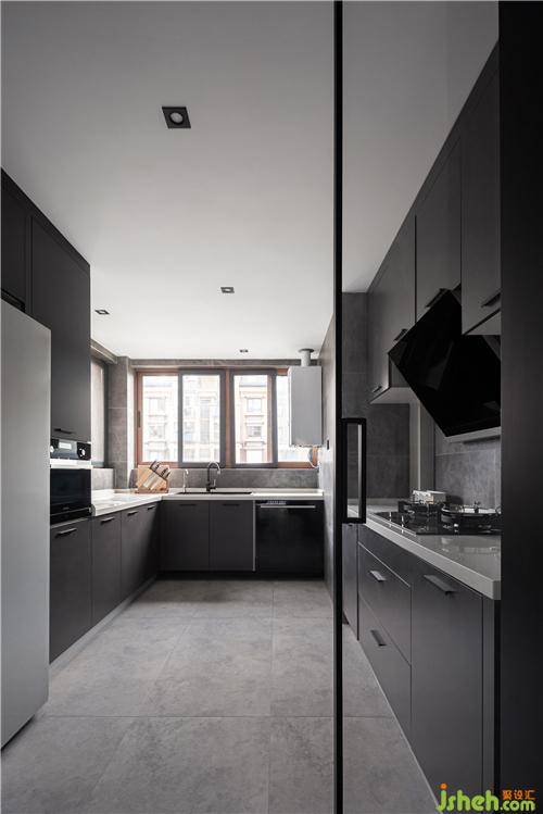 ▲納入陽臺后,廚房中電器高柜、地柜、吊柜都各得其所,操作范圍寬綽,收納空間充裕,窗戶不被遮擋分毫,良好的采光與開闊感在廚房也可盡現(xiàn)。
